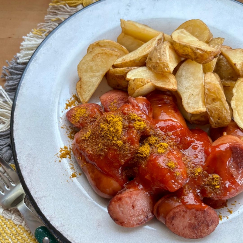 7月ードイツのジャンクフード「カリーブルスト」は皮をカリッと焼いたフランクフルトにトマトソース、